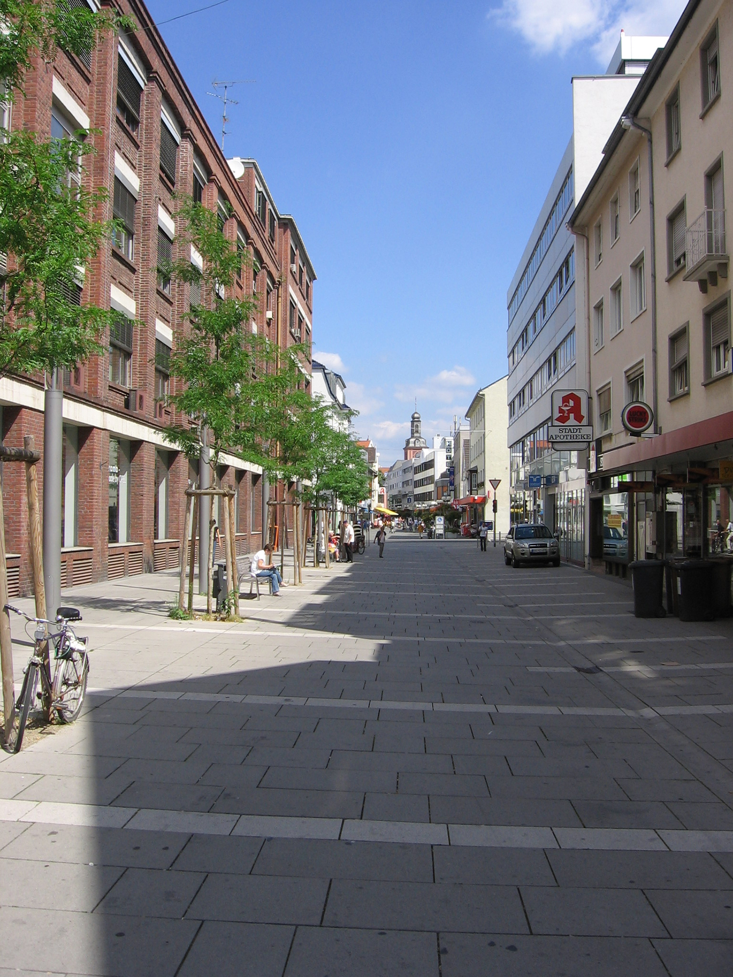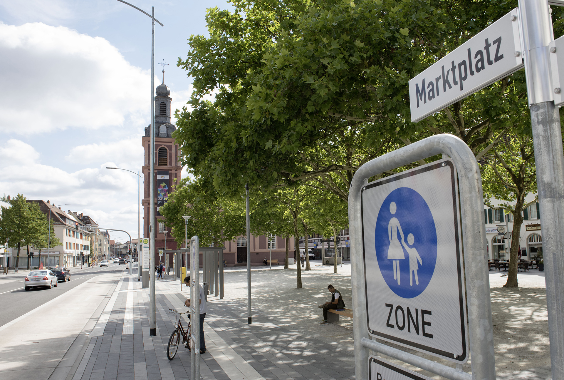Frankfurter Straße: Die Frankfurter Straße bildet die Hauptverkehrsachse im Zentrum. Ziele der Umgestaltung waren die Beruhigung des Verkehrs und eine Verbesserung für den Busbetrieb sowie den Fuß -und Radverkehr.