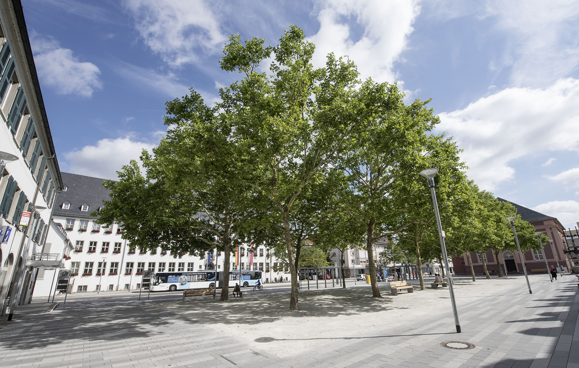 Marktplatz: Der Marktplatz ist das Herzstück der Innenstadt und bildet den Übergang aus der Marktstraße hin zum Mainvorland, dem Landungsplatz und zu den Freizeiteinrichtungen. Durch die Neugestaltung wurde ein Platz entwickelt, der Kirche, Rathaus und westliche Randbebauung zur Geltung bringt.